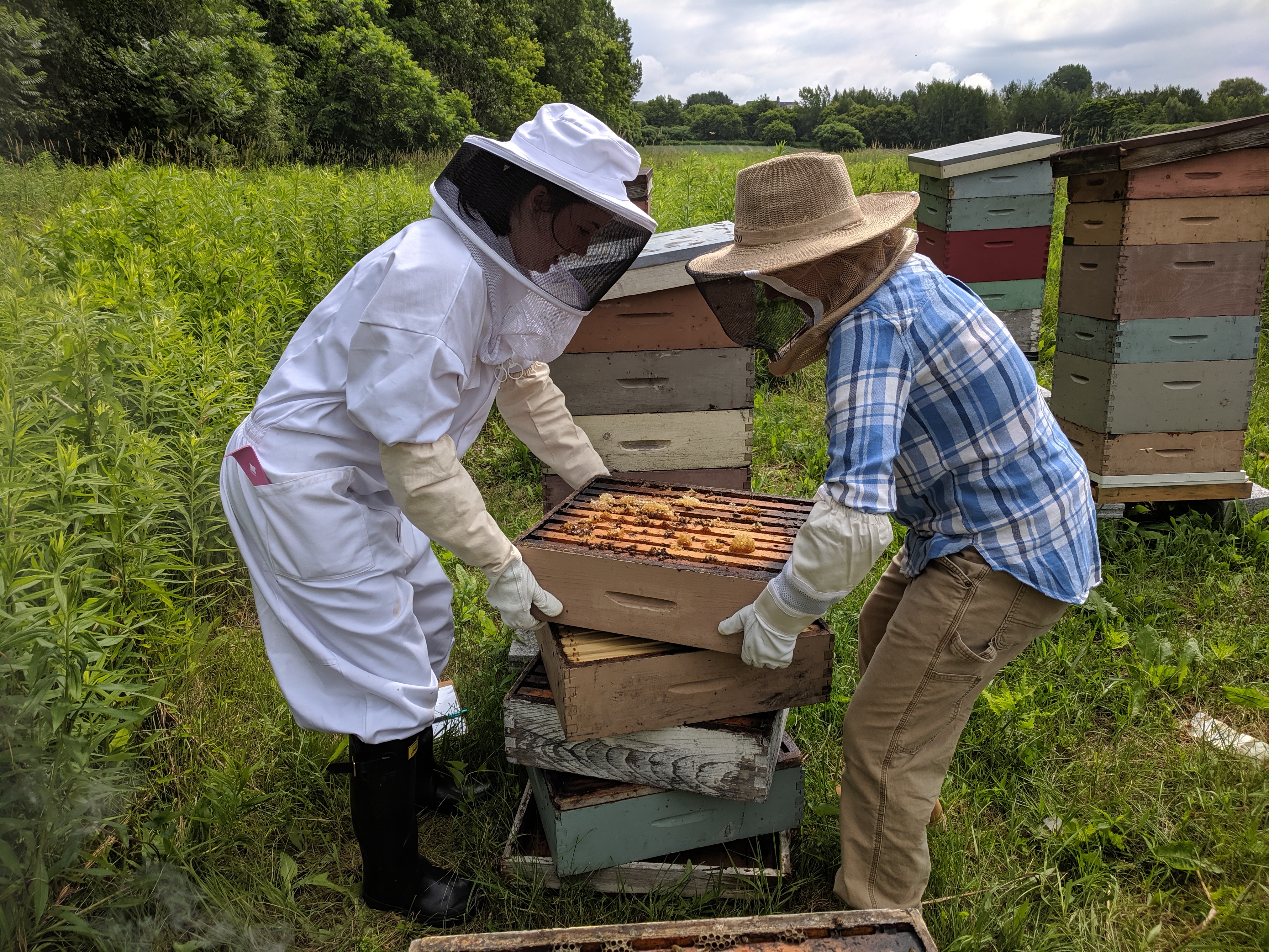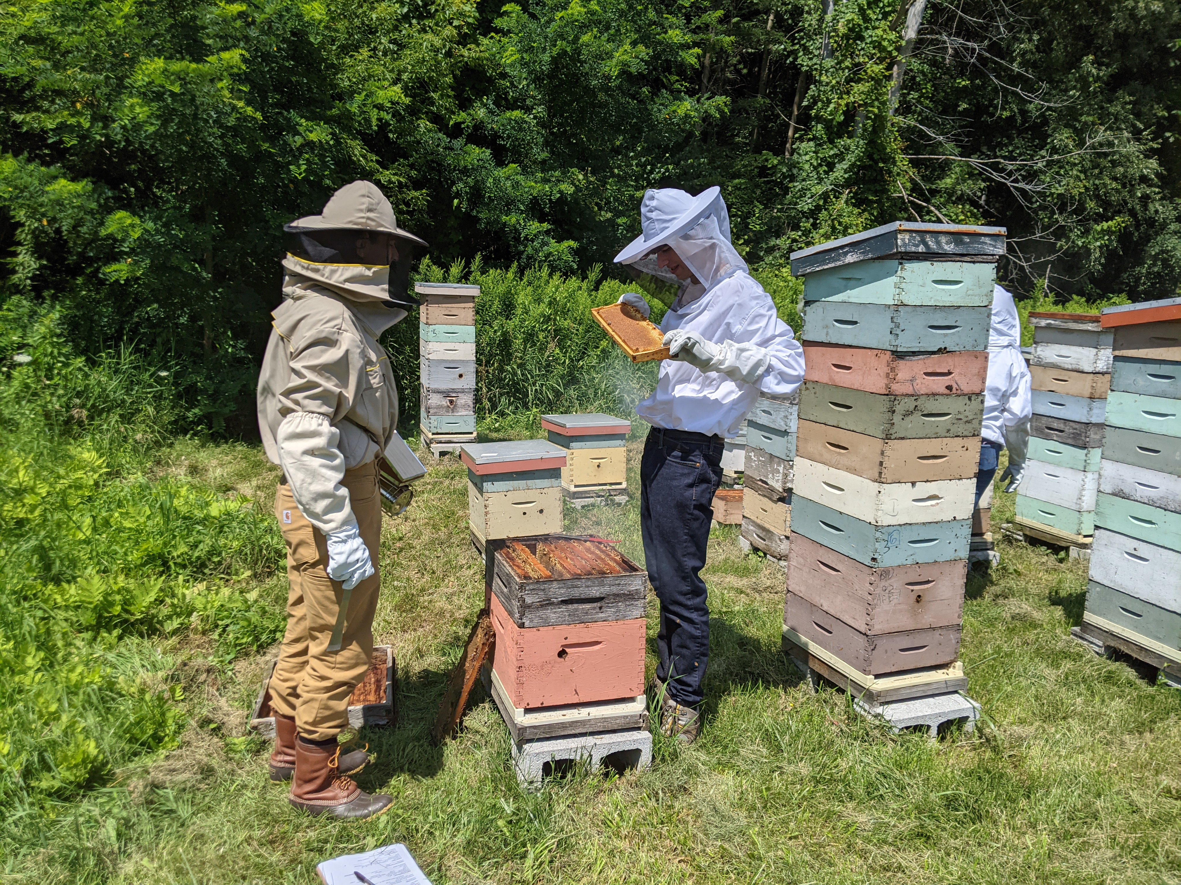 Course Description: This introductory beekeeping course offers a combination of classroom lectures and hands-on field experience. Topics include bee biology and natural history, choosing and purchasing equipment and bees, integrated pest management, seasonal colony management, and queen grafting. Class will be held at the UVM horticultural farm where students will interact with the farm's research and education apiary consisting of over 30 hives. There will also be opportunities for field trips with beekeepers in our community. Attendance is mandatory for every class as each class serves as the foundation for the next. Will you get stung? Protective clothing and proper handling techniques greatly reduce the risk of bee stings. However, some bee stings are inevitable. If you have an allergy to bee venom, you should not take the in-person version of this course. Check out the online version of the course: "Introduction to Beekeeping''.